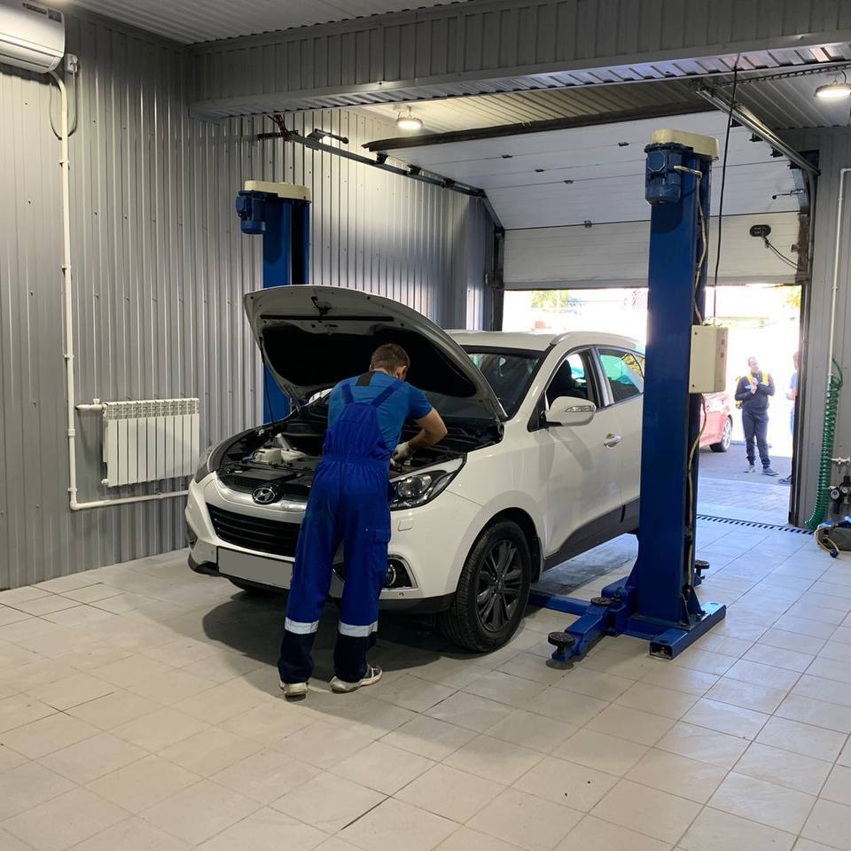 Проверка автомобиля по 28 параметрам: ходовой на подъемнике, радиатора, внешних осветительных приборов, ремней навесного оборудования, уровня и состояния технических жидкостей и др.