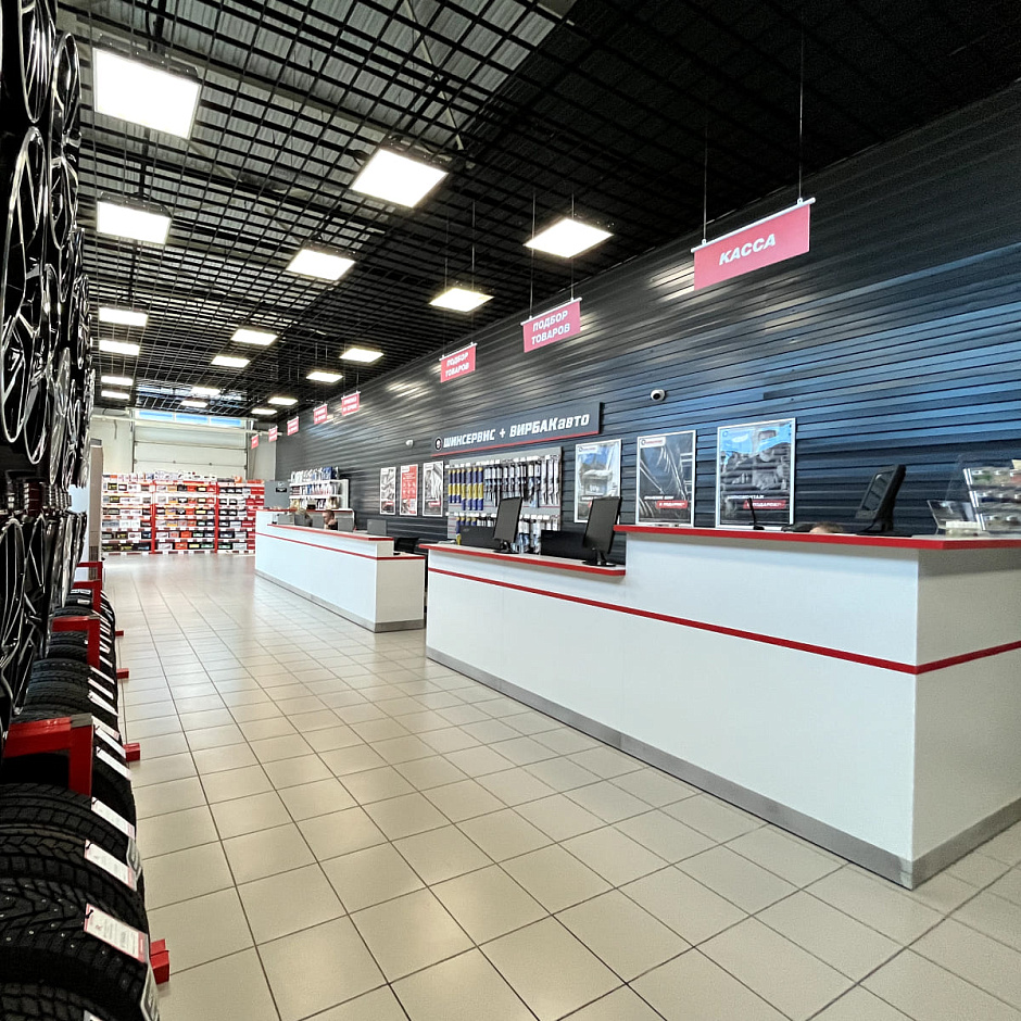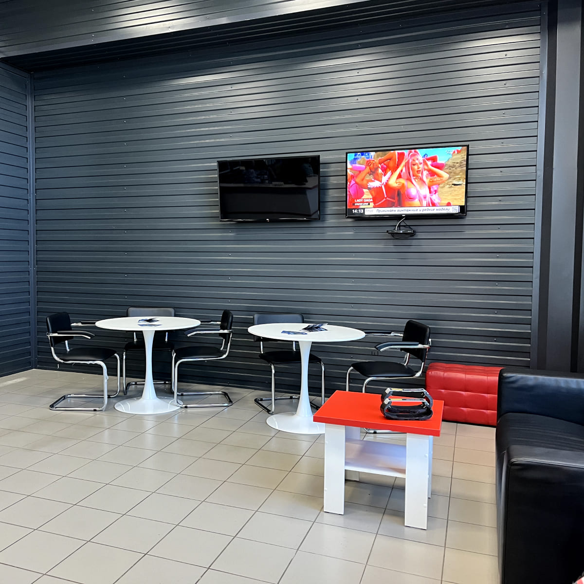 Приятно удивили работой: колеса поменяли оперативно, старые аккуратно упаковали и сложили в багажник. Видно, что мастера работают профессионально. Есть удобная зона ожидания с экраном - можно наблюдать за процессом.