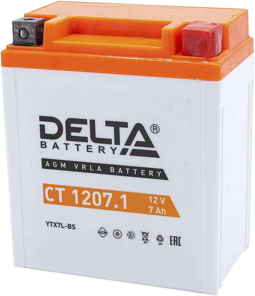 Аккумулятор DELTA CT 1207.1 12V (YTX7L-BS) 7 Ач 100 А прямая полярность