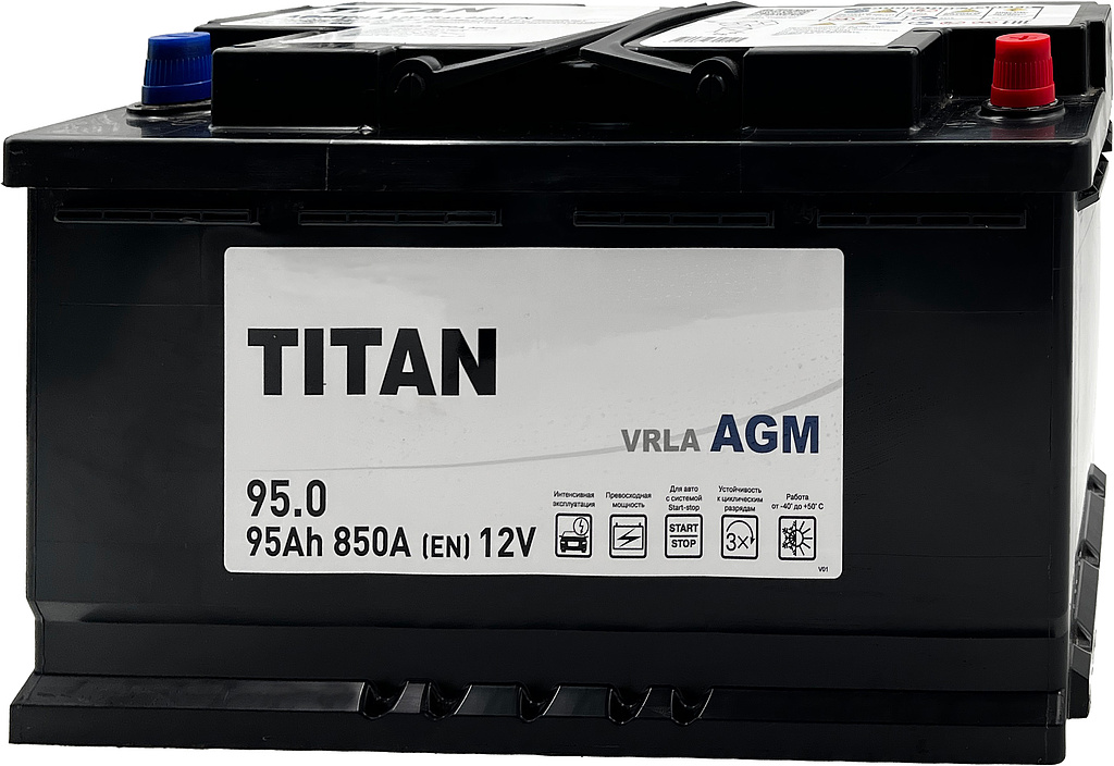 Аккумулятор TITAN AGM 95 Ач 850 А обратная полярность