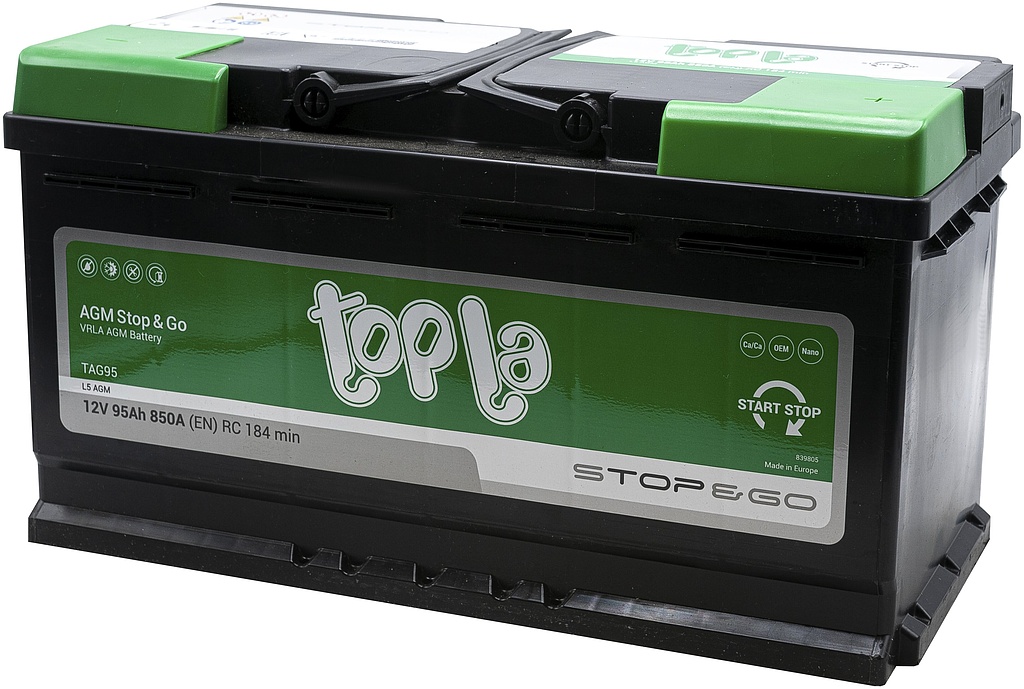 Аккумулятор Topla AGM Stop&Go производится в Словении на заводе концерна TАВ (г. Межица). Используемая технология AGM (Absorbent Glass Mat) — это современный подход в производстве свинцовых автомобильных аккумуляторов, который обеспечивает высокую надежность и долговечность. Электролит в таком аккумуляторе связан в сепараторе из стекловолокна, что гарантирует равномерное давление на активный материал и минимизирует потери.