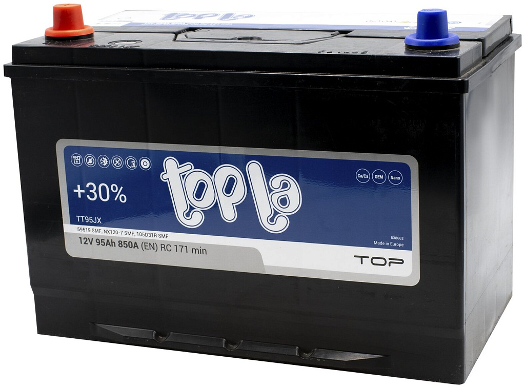 Аналоги аккумулятора Topla Asia Top (59519 SMF) 95 Ач от 850 А прямая полярность азиатский тип корпуса