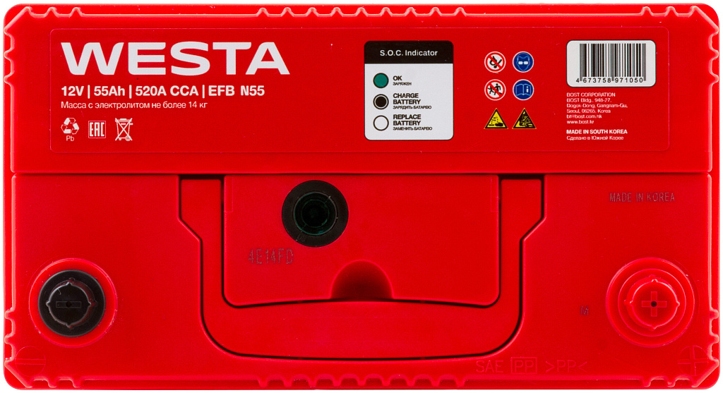 Аккумулятор WESTA Korea (EFB N55) 55 Ач 520 А обратная полярность