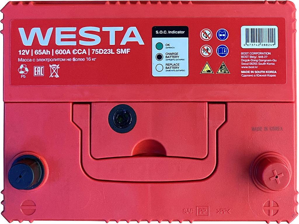 Аккумуляторы WESTA Korea SMF производятся на заводе BOST CORPORATION в Южной Корее с использованием новейших технологий и материалов премиум-класса. Эти батареи предназначены для большинства современных бензиновых и дизельных легковых автомобилей. Благодаря своей конструкции и технологии изготовления они обеспечивают надежное питание всех современных бортовых электроприборов.