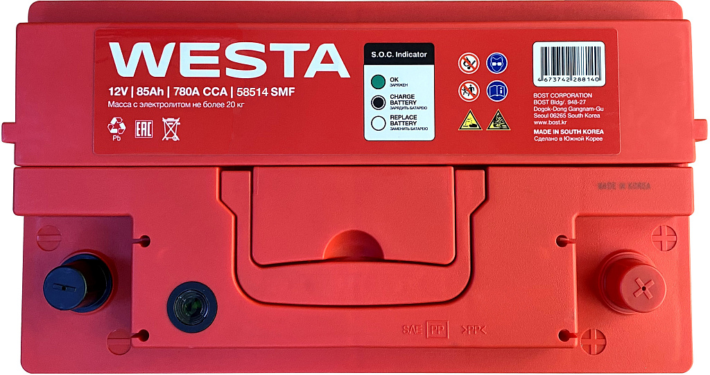 Аккумуляторы WESTA Korea SMF производятся на заводе BOST CORPORATION в Южной Корее с использованием новейших технологий и материалов премиум-класса. Эти батареи предназначены для большинства современных бензиновых и дизельных легковых автомобилей. Благодаря своей конструкции и технологии изготовления они обеспечивают надежное питание всех современных бортовых электроприборов.