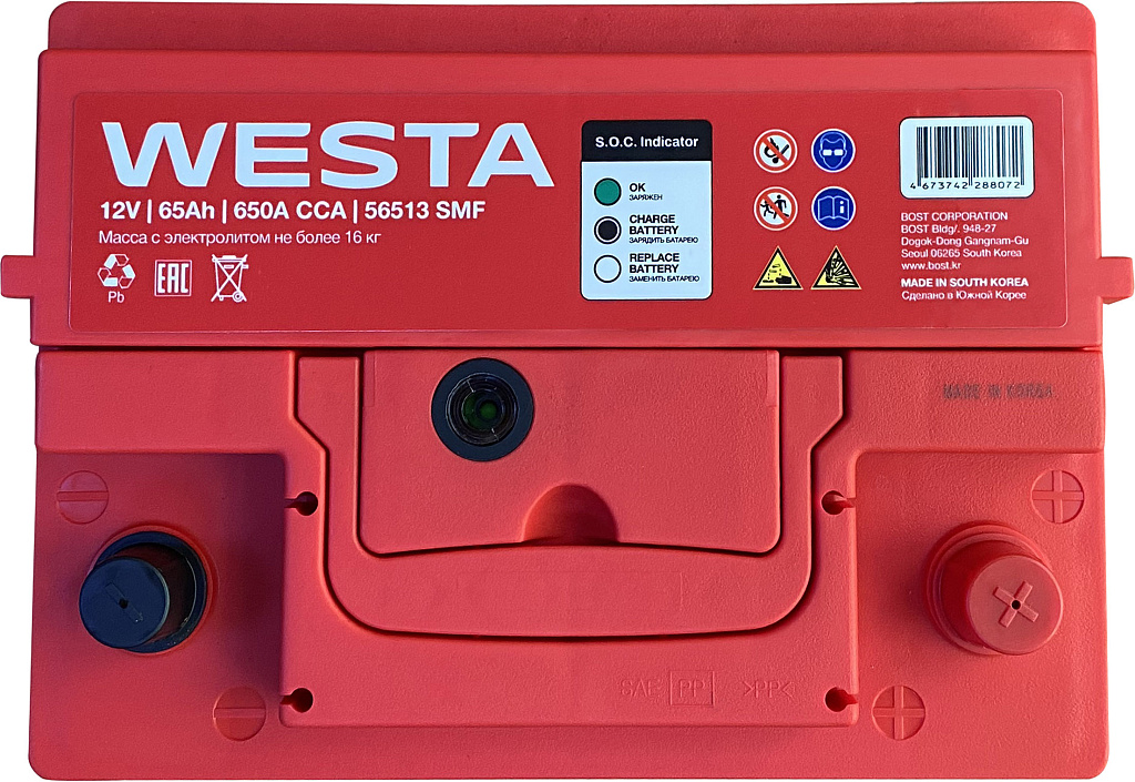Аккумуляторы WESTA Korea SMF производятся на заводе BOST CORPORATION в Южной Корее с использованием новейших технологий и материалов премиум-класса. Эти батареи предназначены для большинства современных бензиновых и дизельных легковых автомобилей. Благодаря своей конструкции и технологии изготовления они обеспечивают надежное питание всех современных бортовых электроприборов.