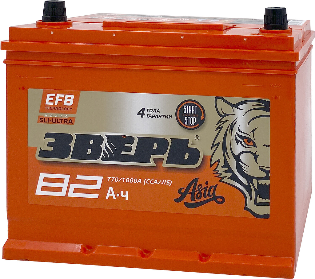 Аккумулятор ЗВЕРЬ Asia EFB 82 Ач 770 А обратная полярность