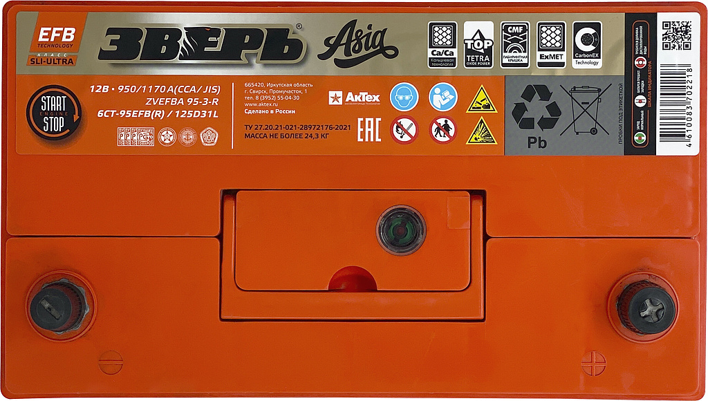 Аккумулятор ЗВЕРЬ Asia EFB 95 Ач 950 А обратная полярность
