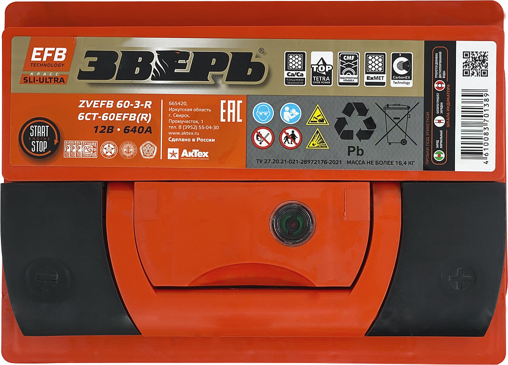 Аналоги аккумулятора ЗВЕРЬ EFB 60 Ач 640 А обратная полярность европейский тип корпуса