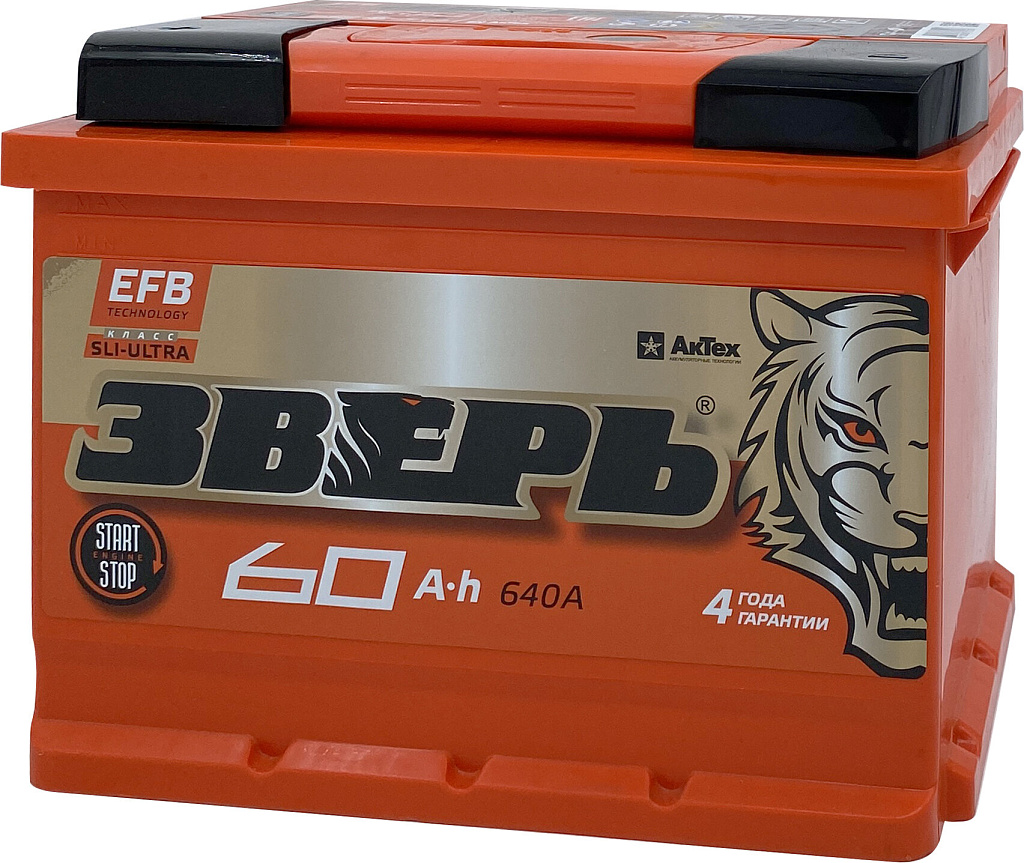 Аккумулятор ЗВЕРЬ EFB 60 Ач 640 А прямая полярность