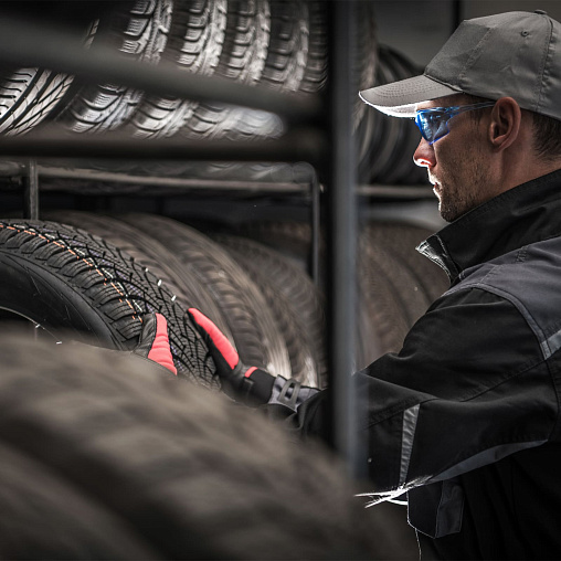 Хранение шин в сборке с дисками и без них на специализированном складе.